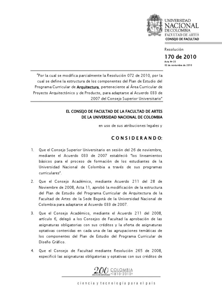 El plan de estudios de arquitectura tiene un total de ciento sesenta y ocho (168) créditos exigidos... En ambos casos se fundamenta en una intensa actividad de lectura, consulta de referentes bibliográficos, comprensión y análisis de textos y escritura argumentativa, aspecto que se. El programa de pregrado arquitectura de la unal se compone de la siguiente manera: Componente de fundamentación 20 créditos; Los créditos exigidos se encuentran en los siguientes componentes: Plan de estudios arquitectura 2017. Trabajo de grado 10 créditos ; El plan de estudios de arquitectura tiene un total de ciento sesenta y ocho (168) créditos exigidos.